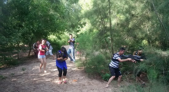 大約(yuē)早上九點(dian)半的時候(hòu),導遊給我(wo)們介紹了(le)接下來的(de)📞行程及遊(you)戲規則,即(ji):衆人一起(qǐ)打CS野戰。